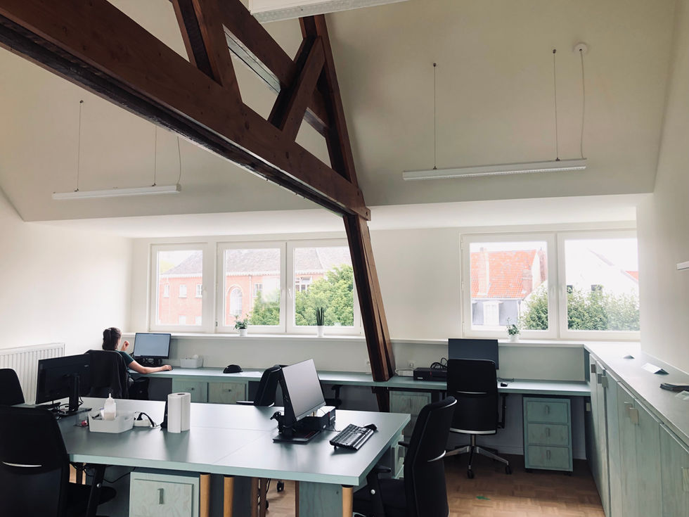 Dit dubbelhuis uit de 19e eeuw had al een rijk verleden achter zich, maar in de laatste jaren werd het versnipperd tot een aantal kantoren en een dakappartement waardoor de hoofdstructuur compleet zoek was. Enkel op het gelijkvloers getuigden nog een aantal elementen van de charme van weleer. Ook bouwfysisch was het pand er enorm slecht aan toe: huiszwam, waterinfiltratie, instabiel metselwerk, .... het bleef van weinig gespaard.