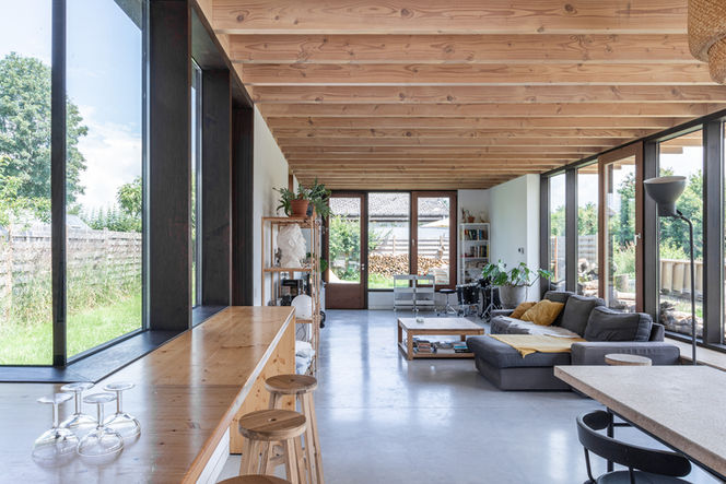 Een directe klik met de bouwheer maakt van dit huis één van de projecten waar ik tijdens mijn jaren bij Dertien12 het liefst aan gewerkt heb. Een eerlijke bouw in hout. Het dragend schrijnwerk en de zichtbare structuur maakten van deze woning met een kleine footprint toch een zeer uitdagende bouwpuzzel. Weinig "tierlantijntjes", maar eerlijk en vol karakter.